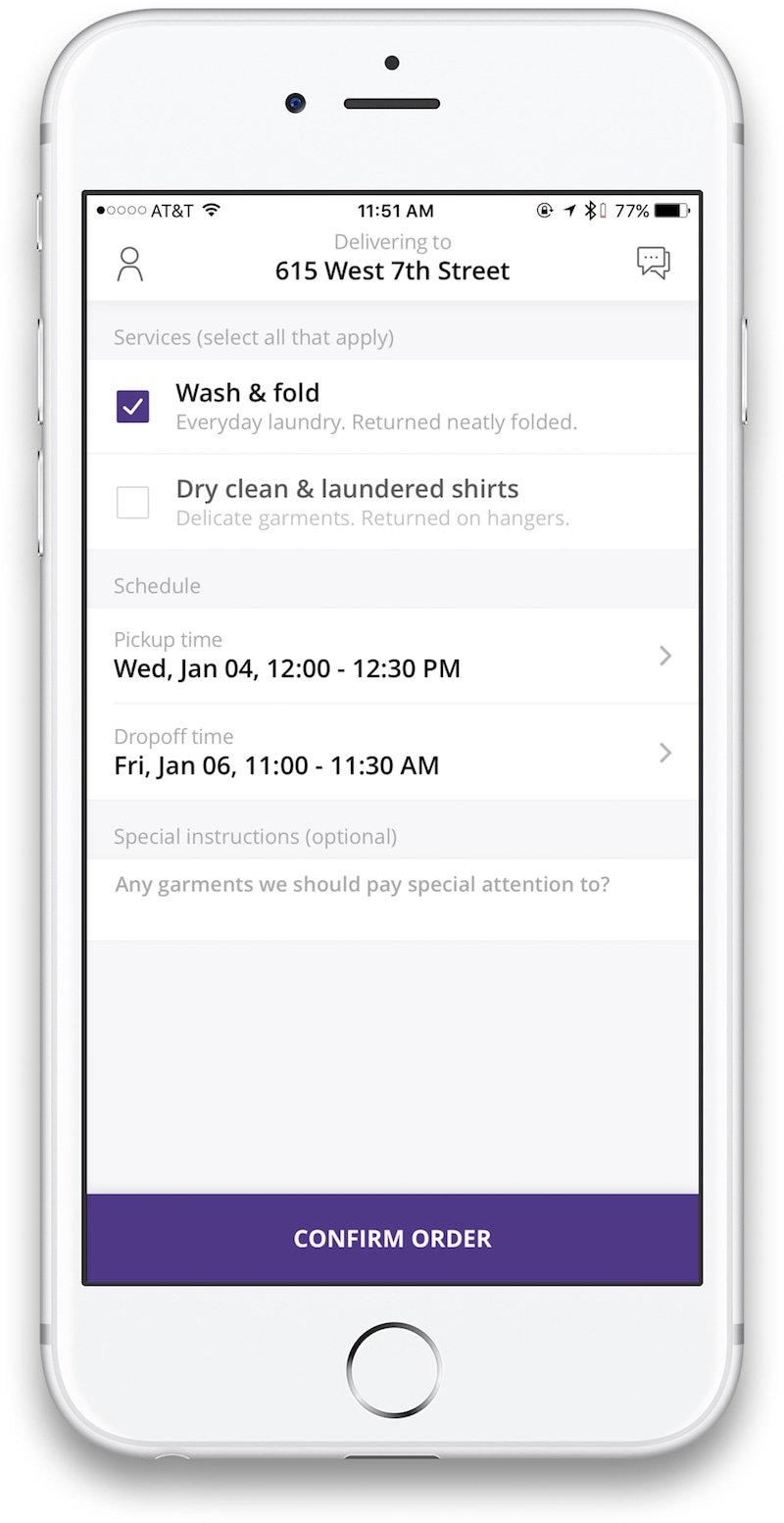 A Press delivery agent will pick up your dirty clothes during your scheduled pickup time.